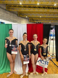 Nella Categoria Junior A2, Aurora Cavallaro è campionessa nazionale alla palla, terza al cerchio e quarta alle clavette. Francesca Rota ha ottenuto l’argento alle clavette e alla palla, oltre al bronzo al nastro.