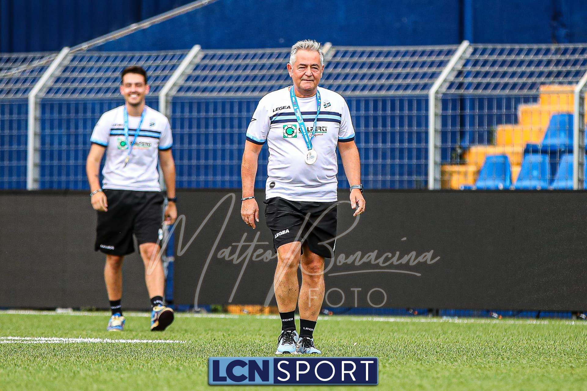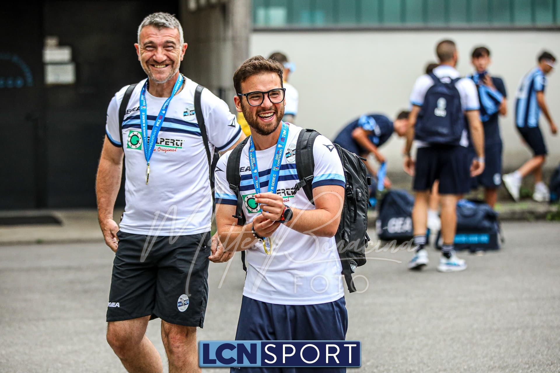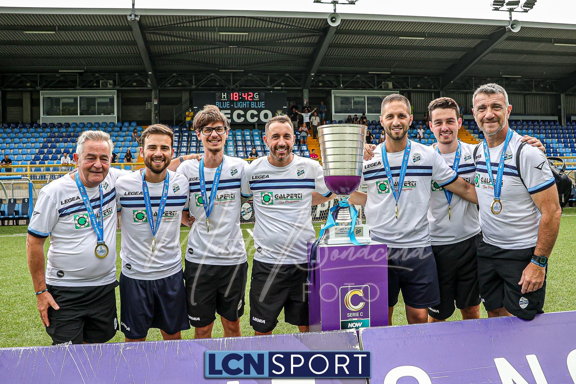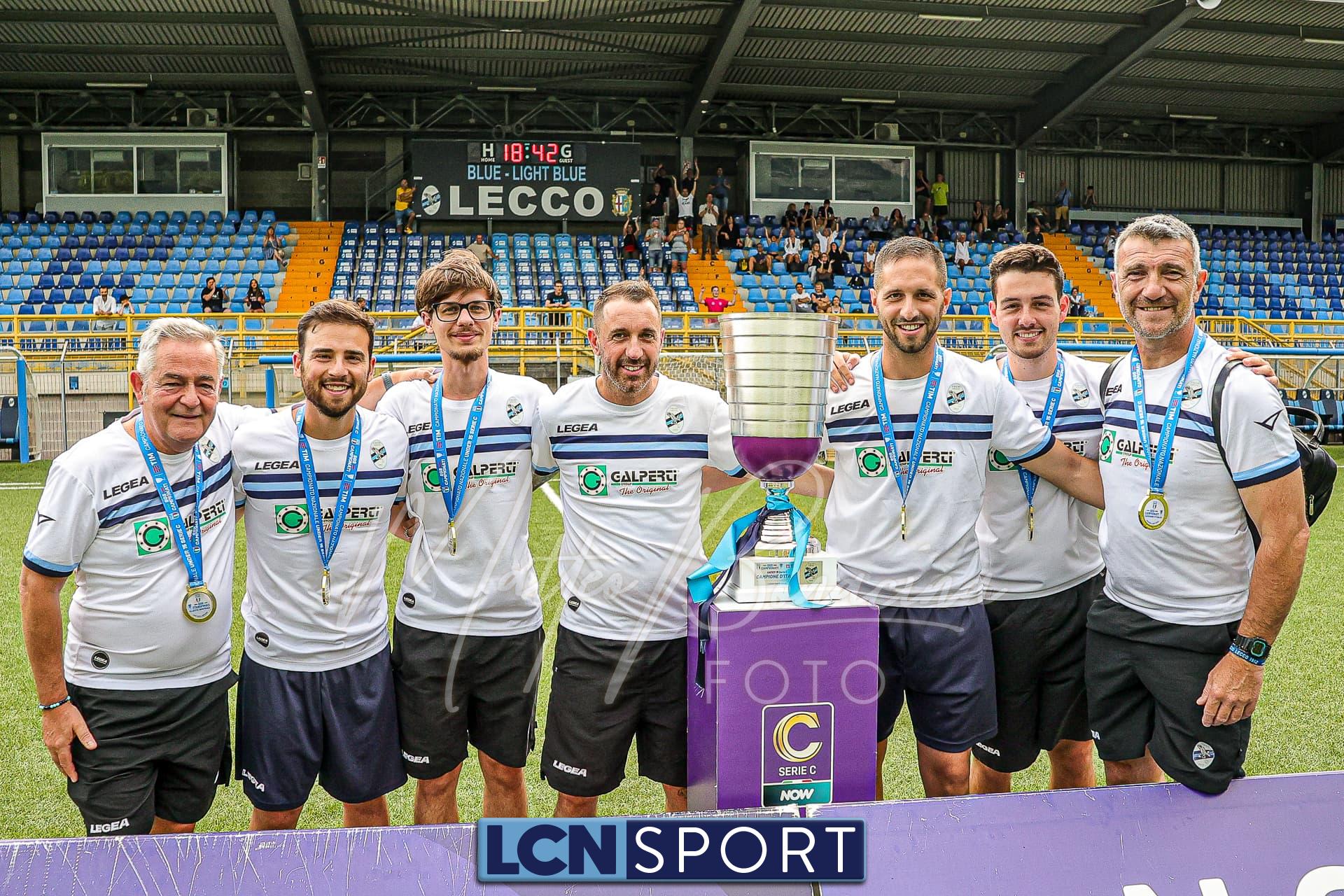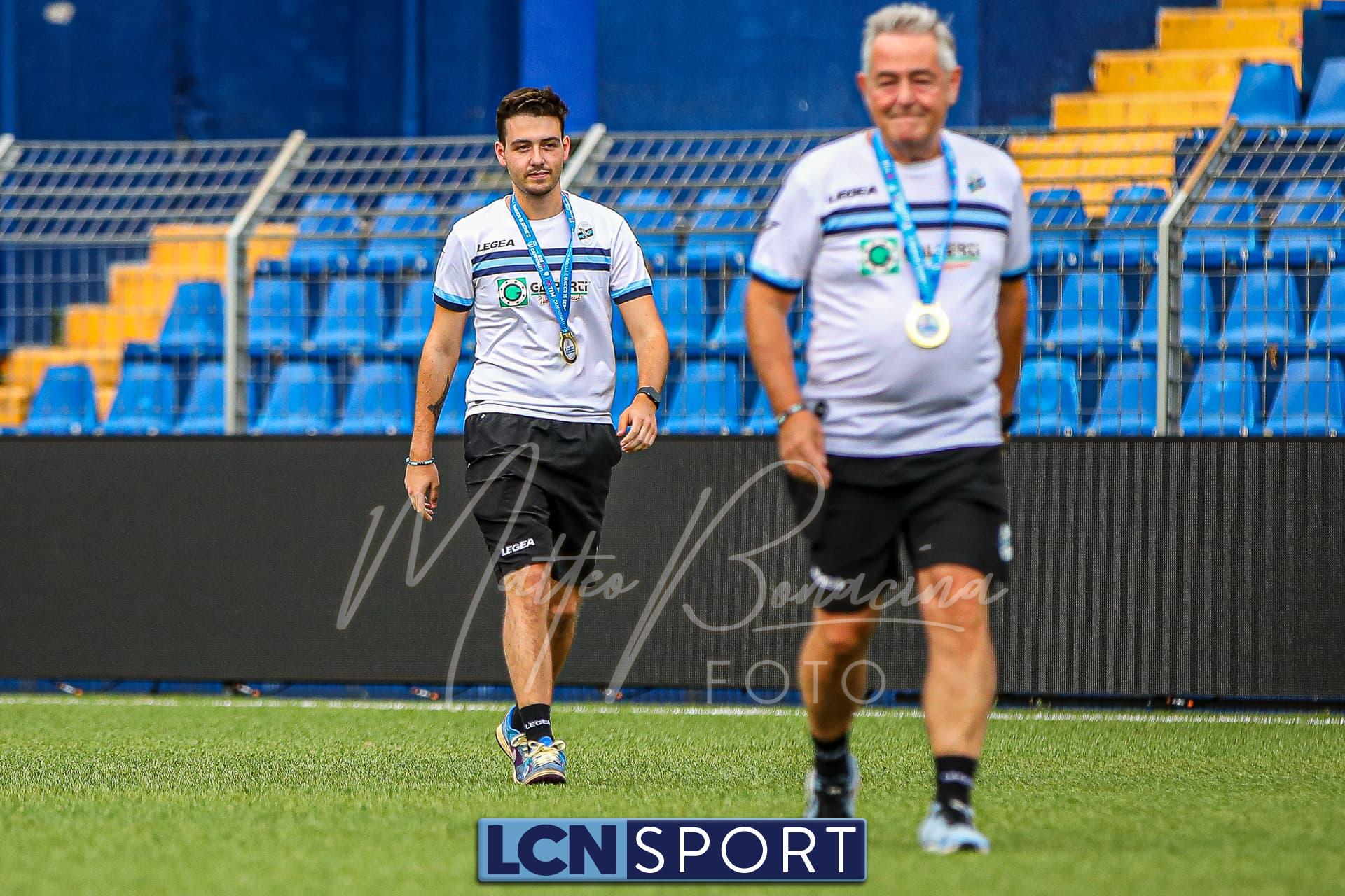 Ultimo atto per la splendida Under 15 della Calcio Lecco 1912. Intorno alle 18, con la tradizionale “strombazzata” celebrativa dell’autista Domenico La Rocca, la delegazione bluceleste ha fatto rientro al “Rigamonti-Ceppi” con lo Scudetto tra le mani del segretario Marco Bolis. Il coloratissimo gruppo guidato da mister Alessandro Vicinanza Toscano si è quindi spostato negli spogliatoi per poi fare il proprio ingresso sul terreno di gioco alla spicciolata annunciati dallo speaker Maurizio Barbuto: a chiudere la sfilata capitan Giacomo Fellini, che ha alzato il trofeo alto nel cielo di Lecco. Non sono mancati canti, balli e i doverosi ringraziamenti per tutti coloro che hanno dato il proprio contributo alla realizzazione di un’impresa straordinaria – dal presidente Aliberti in giù -, frutto del lavoro profuso nel corso di «168 sedute d’allenamento, 35 gare ufficiali, con 28 vittorie e 139 gol segnati, 4 di media a partita». Al termine della cerimonia il gruppone si è spostato allo Shamrock Irish Pub di via Parini per la prosecuzione dei festeggiamenti: ultimo atto per una stagione meravigliosa.