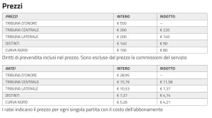Nota: Per la Curva Nord, chi beneficiava del ridotto a €80 dovrà ora pagare il prezzo intero di €100, con un aumento effettivo di €20 (+25%)