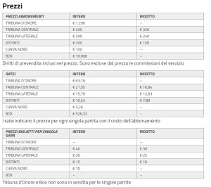 Tribuna centrale | €300 | €400 | +€100 | +33% |