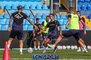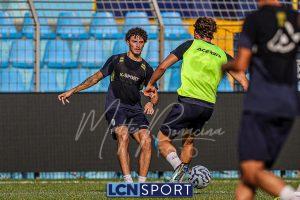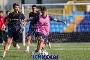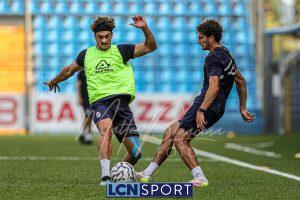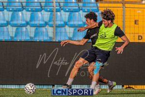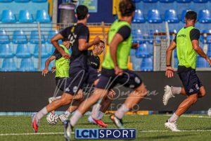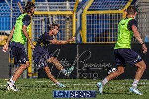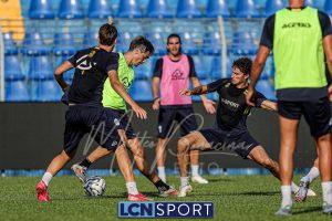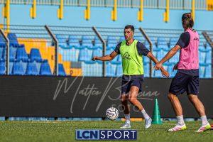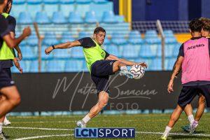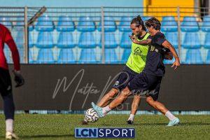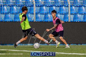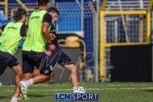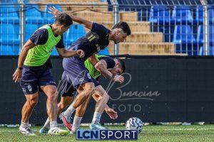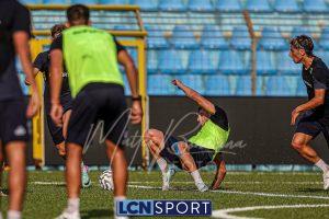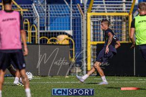Mister Federico Valente ha strutturato la seduta seguendo un programma ben definito. La preparazione è iniziata con la fase di attivazione, momento fondamentale il corpo a dei carichi maggiori. Il cuore dell’allenamento è stato dedicato a esercitazioni di possesso palla su metà campo, con diverse varianti tattiche ma sempre con la finalità ultima del gol. Durante questa fase, due squadre si sono affrontate utilizzando Frigerio e Anastasini come jolly, elementi in grado di giocare con entrambe le formazioni per creare superiorità numerica e fluidità di gioco. Nel corso dell’esercitazione, Frigerio ha lasciato il campo – nessun problema, solo gestione programmata – e il suo ruolo di jolly è stato assunto da Mihali, permettendo così a Valente di testare diverse soluzioni tattiche. La seduta si è conclusa con la parte atletica a secco. Non sono passate inosservate le assenze di Grassini, Tordini e Di Gesù, giocatori che risultano essere fuori dal progetto tecnico bluceleste; al termine della seduta il diesse Minadeo e mister Valente hanno dialogato per qualche minuto al centro del campo: difficile pensare che il mercato non fosse presente nel breve confronto.