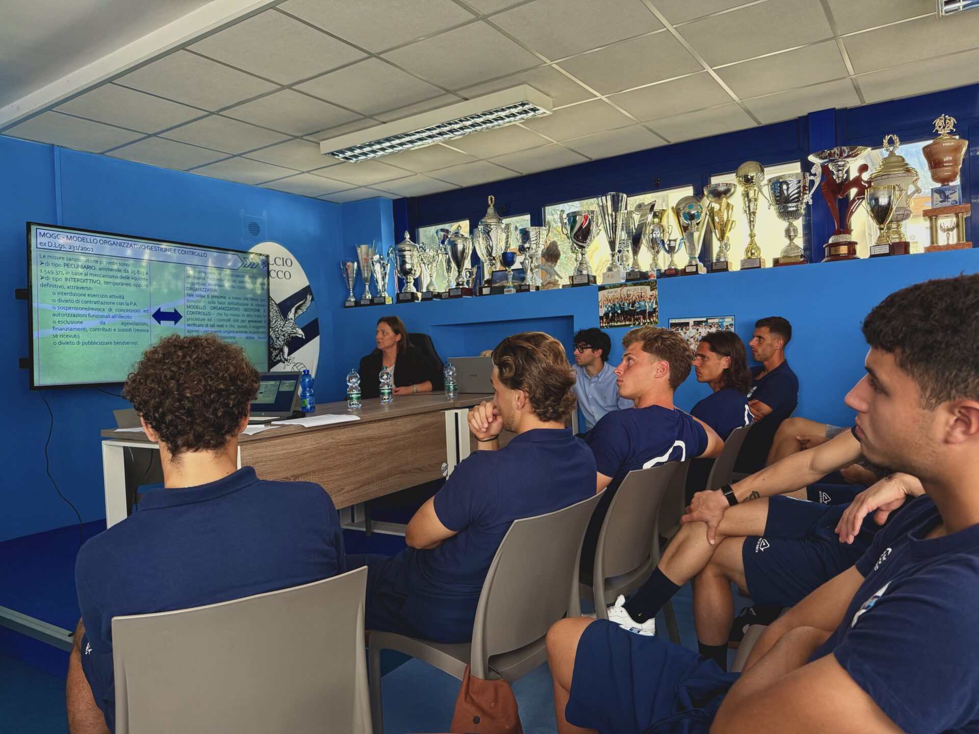 La Calcio Lecco 1912 ha concluso un importante percorso formativo sulla compliance societaria che ha coinvolto l’intera struttura del club, dalla prima squadra al settore giovanile. L’iniziativa, svoltasi tra giovedì e venerdì scorsi presso lo stadio “Rigamonti-Ceppi”, rappresenta un segnale della volontà della società bluceleste di investire su trasparenza, legalità e valori condivisi. La formazione, come spiegato da via Don Pozzi, è stata organizzata in collaborazione con l’Organismo di Vigilanza Seven Sport Management, con la dottoressa Patricia Giovannucci che ha guidato gli incontri formativi. L’obiettivo è chiaro: «Costruire una cultura aziendale basata sulla correttezza e sulla responsabilità, dentro e fuori dal campo». Il progetto ha previsto due momenti distinti. Giovedì, nella sala stampa dello stadio, si sono riuniti presidenza, dirigenza, personale del club, calciatori della prima squadra e staff tecnico-medico. Venerdì, in tribuna, è stata la volta del settore giovanile maschile e femminile, con i rispettivi staff e collaboratori.