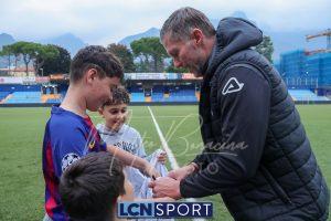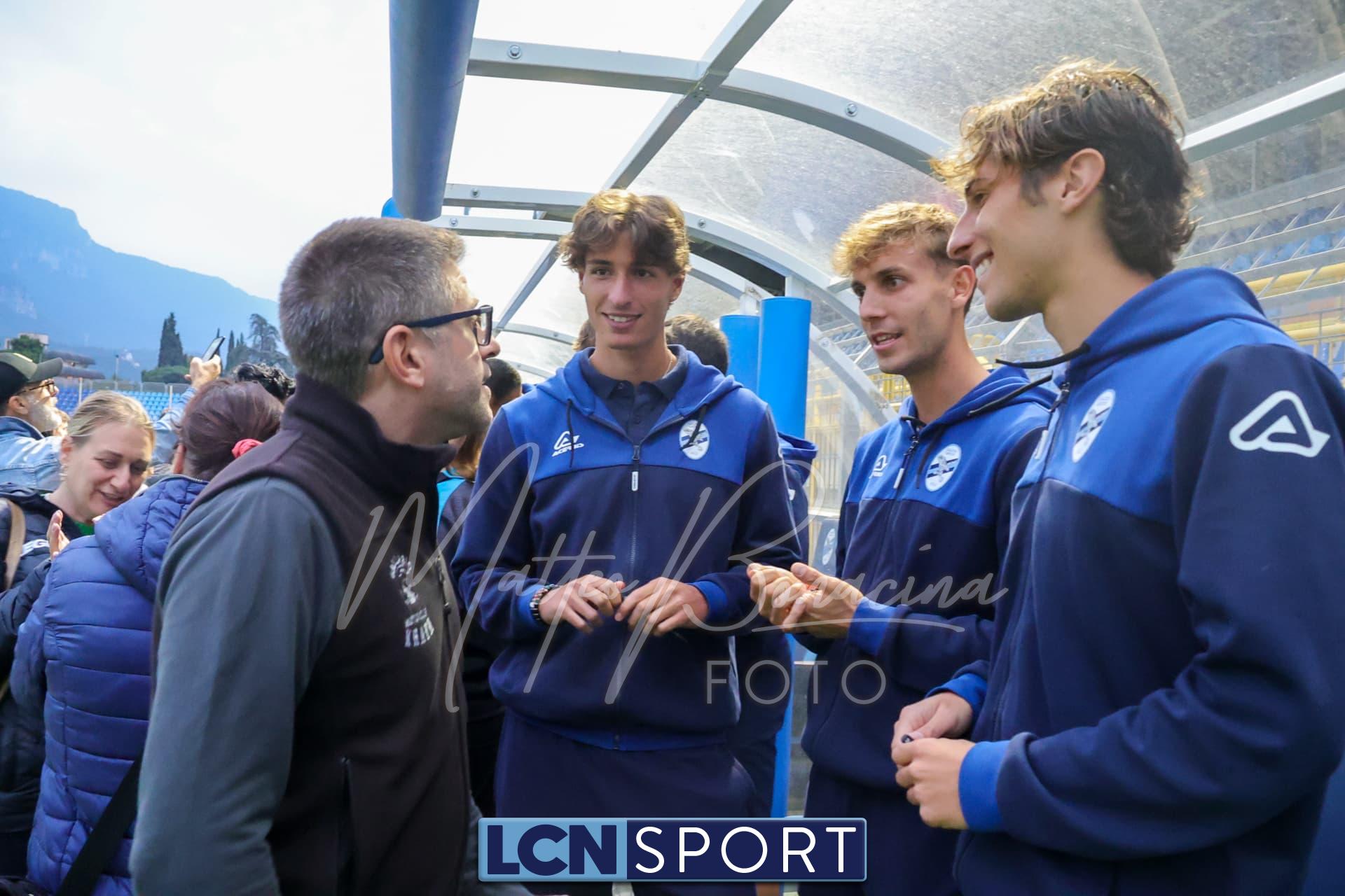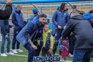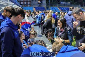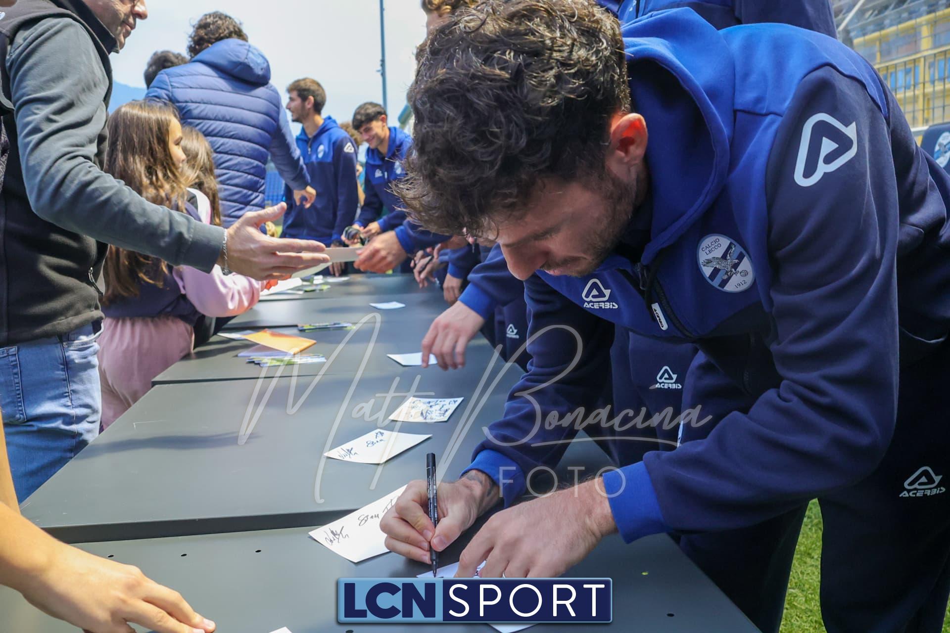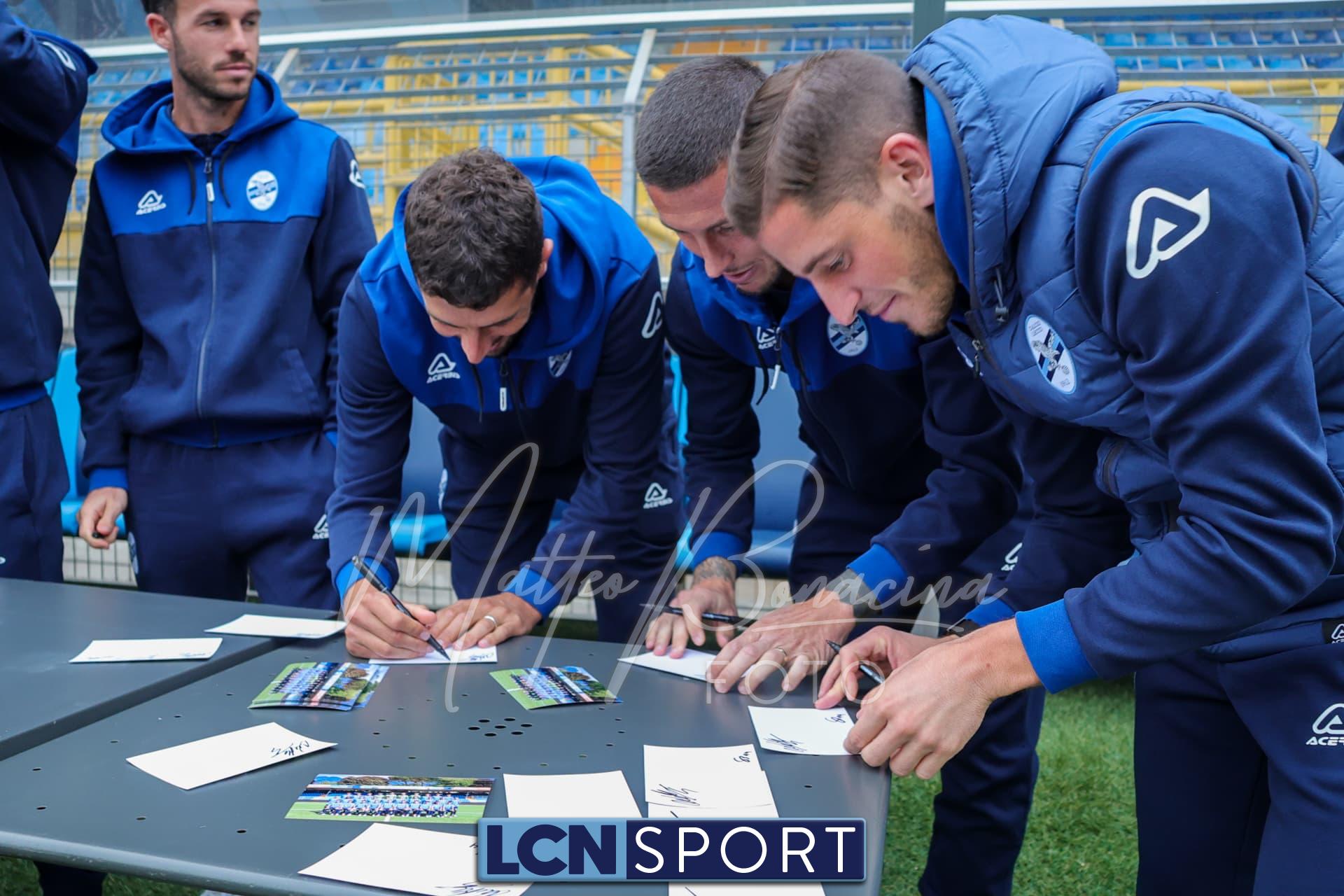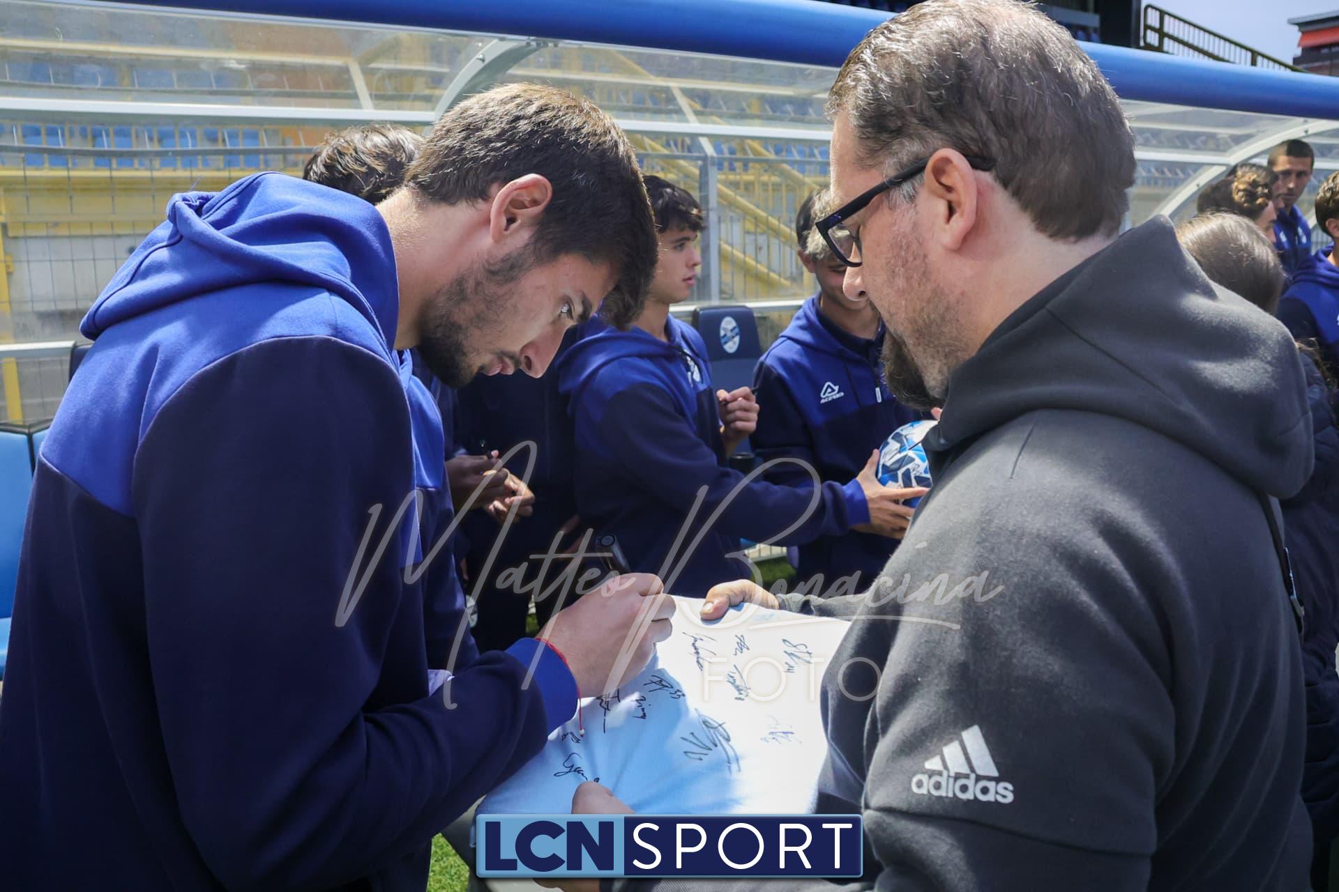 Il clima è stato leggero e positivo. Tra foto, autografi e scambi di battute, l’evento ha visto una massiccia presenza di bambini e bambine, veri protagonisti della giornata insieme ai loro beniamini in maglia bluceleste. Presente anche il presidente Aniello Aliberti, che ha voluto essere al fianco dei suoi dipendenti in questo momento di condivisione con i supporter. La rosa era presente al completo con l’unica eccezione di Manuel Ferrini, operato lunedì al perone; allo stadio anche Mattia Tordini, attualmente fuori lista ma comunque parte integrante del gruppo squadra. Bello, in particolare, un momento che ha riguardato Jacopo Furlan: al portiere è stato fatto dono da una giovane giocatrice delle giovanili di alcune carte da gioco rare e il numero uno, grande collezionista, non ha nascosto apprezzamento ed emozione.