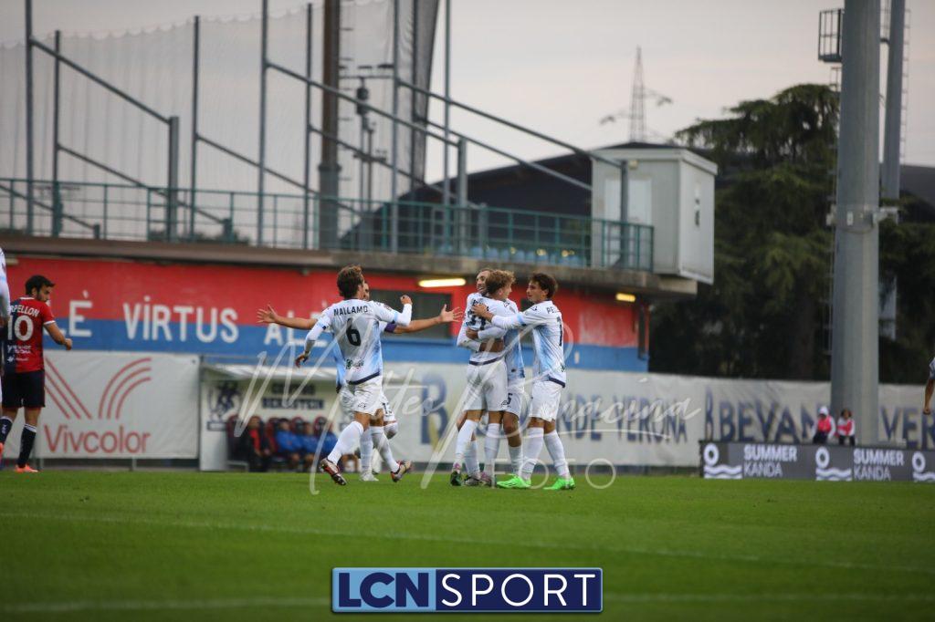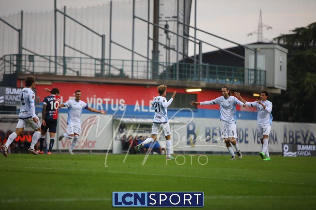 Insiste la Virtus: 78′, parata di Furlan su Fabbro sotto porta, poi palla sul palo. All’84’ fuori Furrer, dentro Frigerio. Furlan è insuperabile e all’86’ e si oppone ancora alla grande su Amadio. Sul contropiede Frigerio spreca. È un tiro al bersaglio: ci prova anche Patanè da fuori, ancora il portierone bluceleste impegnato. Il gol però è nell’aria: sul cross di Fabbro all’88’ arriva la deviazione vincente di Pagliuca per il 2-2, meritato dai padroni di casa.