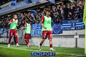 Al 76′ il Lecco si distende a destra, Kritta calcia da lontano e il suo diagonale fa la barba al palo. All’80’ gioco interrotto sotto lo spicchio di tifosi blucelesti per la caduta di due supporter dalla balaustra. Si attendono i soccorsi e l’uscita della barella, la ripresa è dopo otto minuti di stop. Al 95′ fuori Furrer, che si prende l’ovazione del pubblico bluceleste, per Galeandro.
