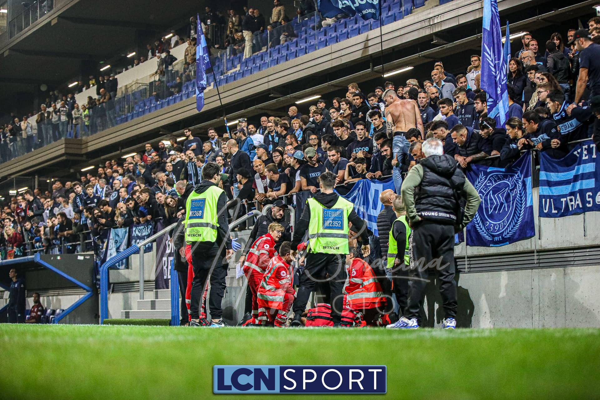 Minuto numero ottanta di AlbinoLeffe-Lecco, grande tensione in campo e grande spinta dei 513 tifosi blucelesti fuori. I lariani sono sopra 0-1 grazie alla perla che coglie una ventina di minuti prima Guillaume Furrer e si stanno difendendo con ordine nonostante i tentativi dei padroni di casa. Tanti supporter delle Aquile, soprattutto per quanto riguarda la zona più calda del tifo, sono seduti sulla transenna della tribuna e, in un attimo, due tifosi cadono nel vuoto dopo aver fatto un volo di circa tre metri: uno si rialza subito, l’altro rimane steso a terra con le braccia larghe e perde conoscenza dopo aver sbattuto con non poca forza la cervicale; un terzo scende volontariamente dagli spalti e viene poi allontanato dagli steward per permettere l’intervento dei professionisti. Sugli spalti cala il gelo, dal campo immediatamente i giocatori si rendono conto di quanto accaduto e chiedono l’intervento dei soccorritori, che scattano sia dalla panchina bluceleste che dalla zona presidiata dai sanitari del 112: le manovre hanno successo e il giovane, appartenente a uno dei gruppi organizzati della Curva Nord di Lecco, riprende conoscenza.