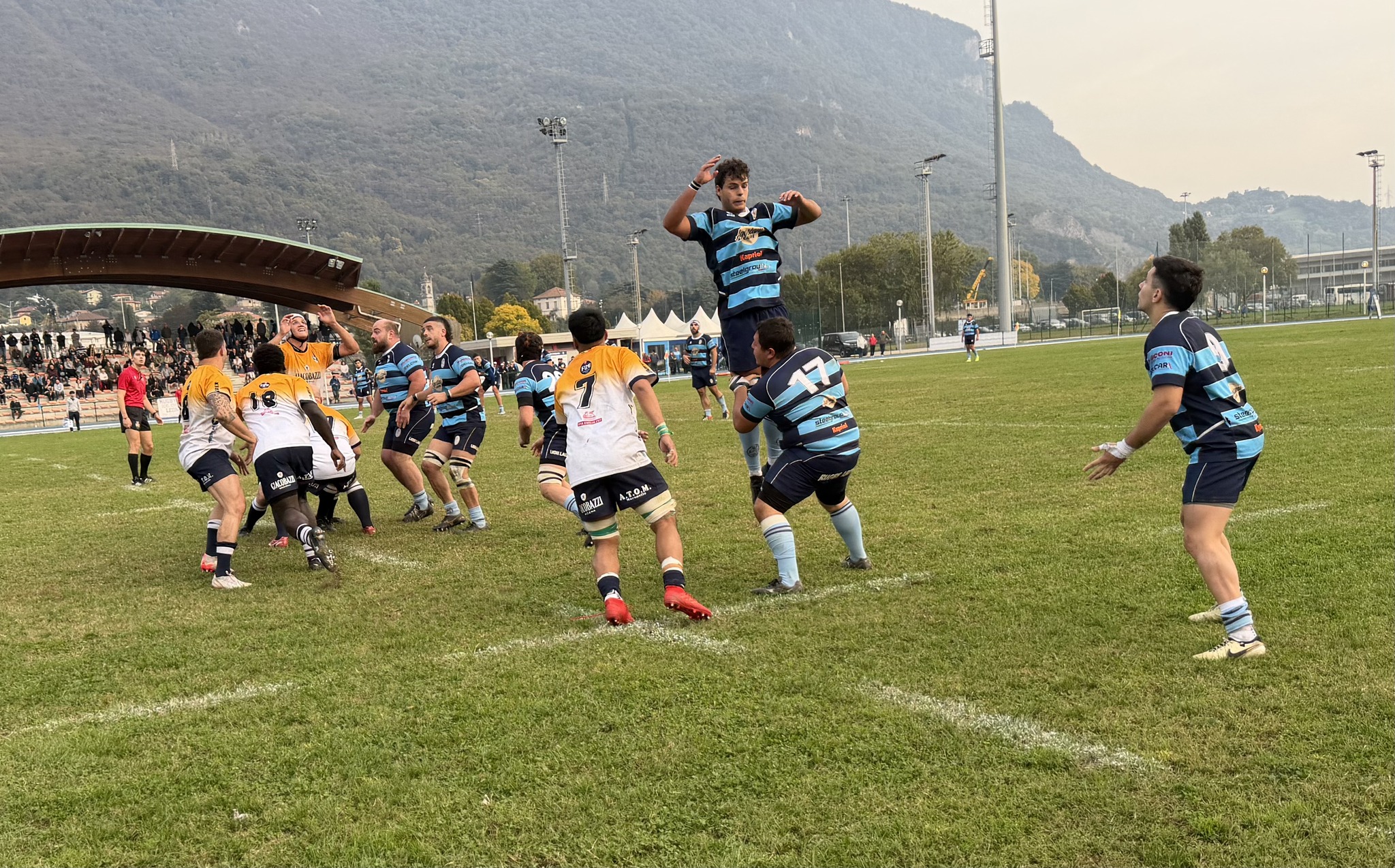 I blucelesti, però, sono coriacei e hanno la scorza dura come vuole l’allenatore Sebastian Damiani, e sono in grado di riaprirla. Prima ci pensa la punizione di Piccoli a rompere il ghiaccio, quindi la meta di Valentini per il 10-14. Il finale di tempo è splendido, ancora Piccoli su punizione e Valentini in meta per il 20-14 dell’intervallo.