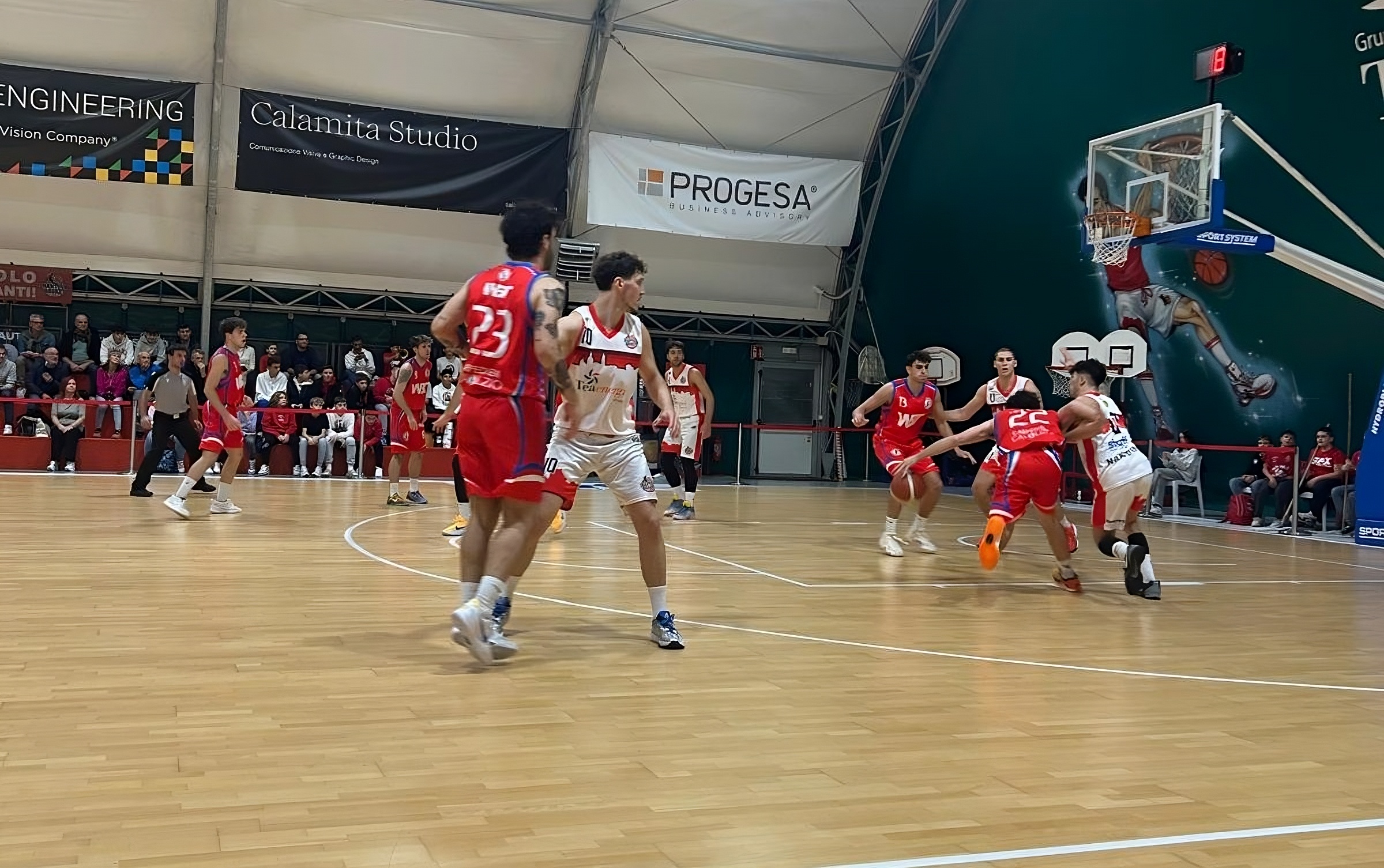 Nel secondo quarto invece la musica cambia; i virgiliani che iniziano a mostrare tutta la loro forza e all’esperienza uniscono un’ottima freschezza atletica, portandosi all’intervallo lungo avanti di tre punti (37-34). Gli ultimi 20 minuti non sono consigliati ai deboli di cuore. La partita prosegue punto a punto con le due squadre che, canestro dopo canestro, regalano al pubblico sorpassi e controsorpassi.