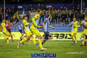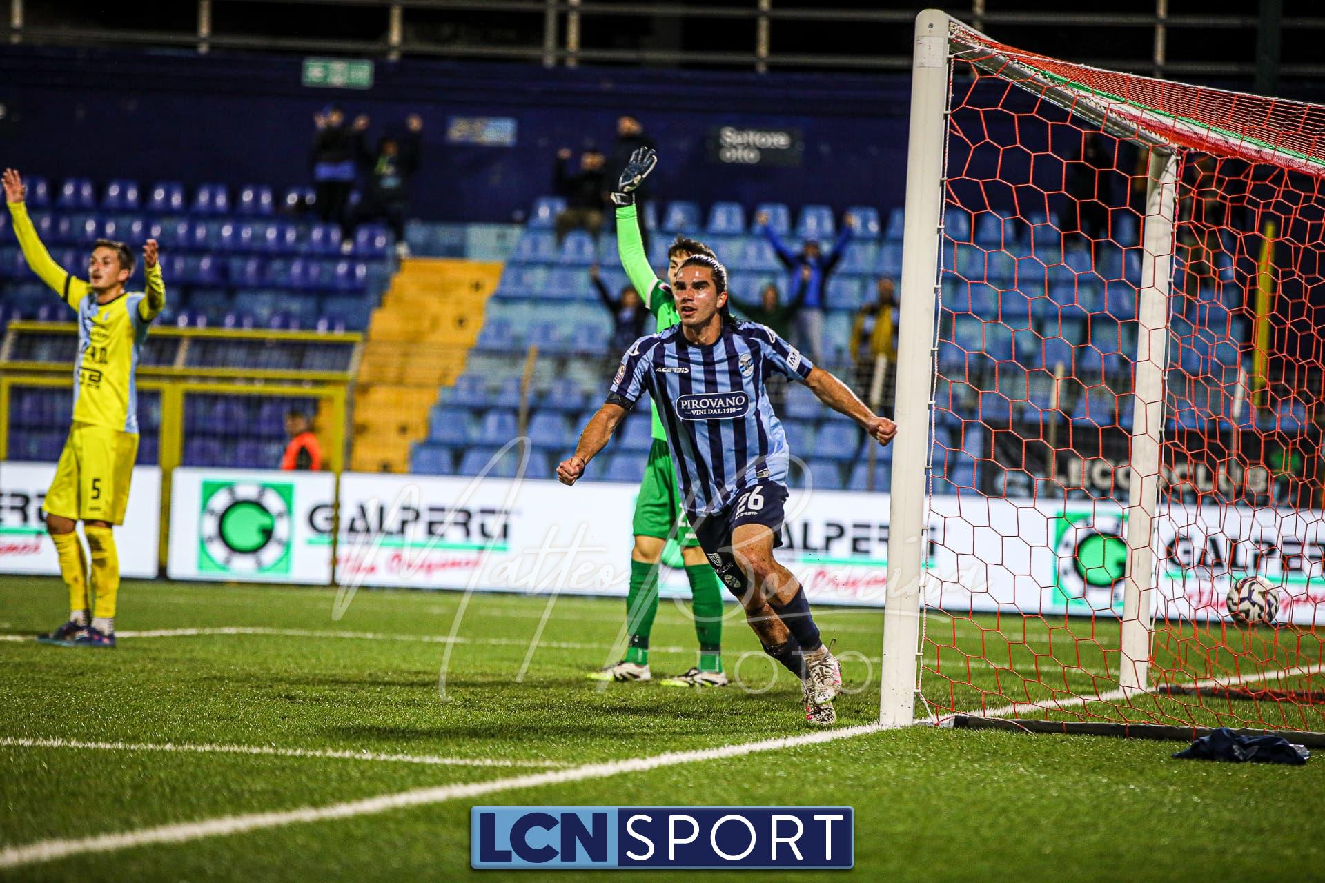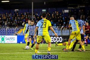 Al 13′ grandissima azione del Lecco, quasi tutta di prima, con un fraseggio avviato da Metlika, perfezionato da Frigerio, rifinito ancora da Metlika e calciato, di potenza, da Sipos alle spalle di Manfrin. Il Lecco va in vantaggio e prende coraggio.