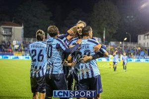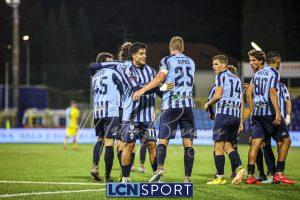 I blucelesti dominano dal primo minuto e trovano subito il vantaggio, continuando a spingere per tutto il primo tempo, chiuso sul 4-1. In gol Sipos, Frigerio, Kritta, Zanellato e poi Galeandro nella ripresa. Gli ospiti sbagliano un rigore