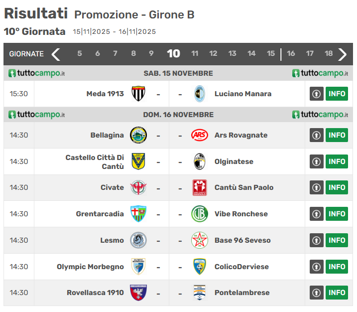 Di seguito, viene mostrato il quadro delle partite previste per la prossima giornata del girone B di Promozione lombarda: