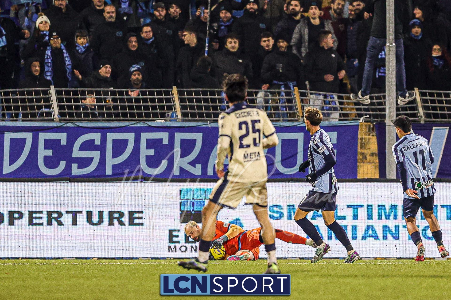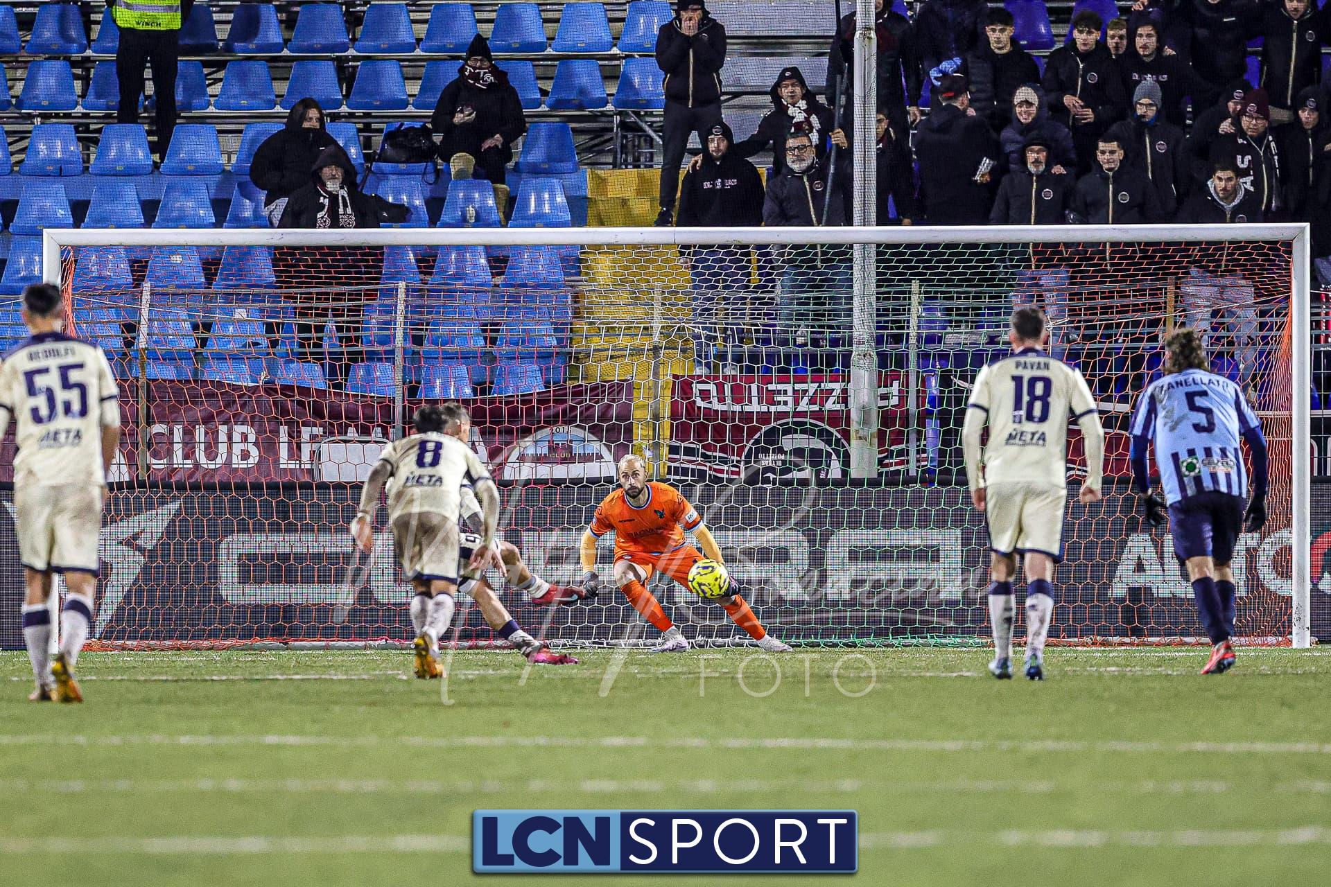 Il primo errore di Voltan al 73′, palla persa davanti all’area: Castelli va a calciare senza inquadrare la porta. La partita rallenta, ma all’82’ da un cross innocuo – dopo un errore di Pellegrino – c’è un fallo di mano di Zanellato e l’arbitro non ha dubbi: rigore netto e check all’FVS inutile. Dal dischetto Castelli è freddissimo e porta in vantaggio i suoi.