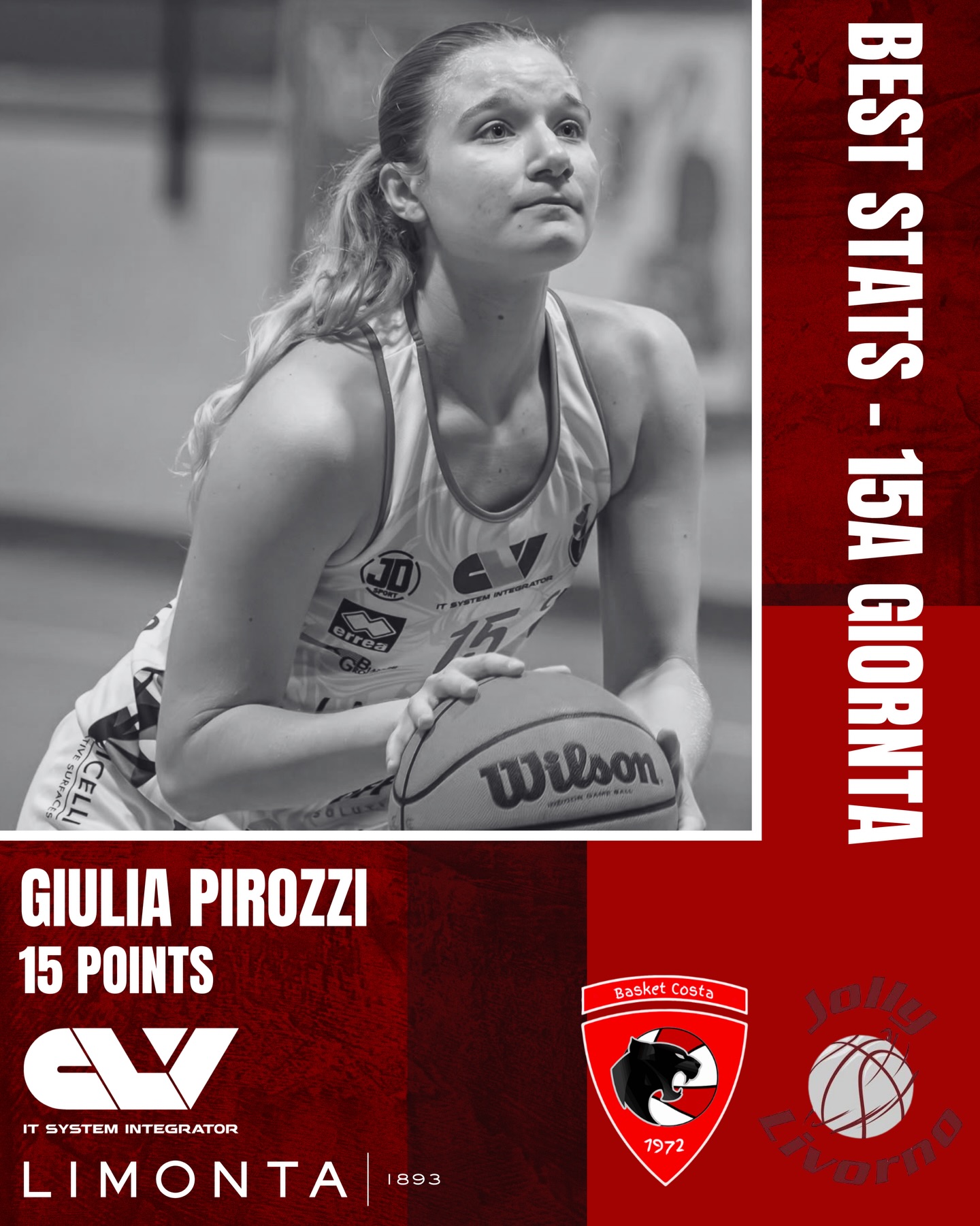 JOLLY BASKET LIVORNO: Braccagni, Marangoni* 16 (4/9, 2/5), Sammartini* 5 (1/6, 1/5), Botteghi* 19 (4/6, 3/8), Sassetti 4 (2/2, 0/4), Rinaldi, Spagnoli, Miccio* 17 (1/4, 5/12), Poggio* 4 (2/5 da 2), Poggi