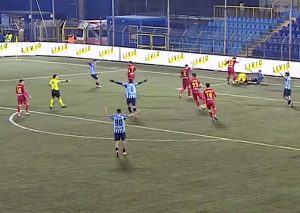 I minuti finali di Lecco-Albinoleffe sono stati contraddistinti da un episodio controverso. Al 45′ della ripresa, infatti, i padroni di casa hanno creato una grossa occasione sulla prosecuzione di una palla inattiva: sfera da Anastasini a Parker, gran sinistro dal limite, palo pieno, rimbalzo sulla schiena di Baldi e, fortuna sua, conclusione dell’azione con un nuovo calcio d’angolo. A complicare la vicenda è stata la traiettoria del pallone, che dopo aver toccato il terreno di gioco è rimbalzato nuovamente verso la zona occupata dai calciatori: Bonaiti si è rapidamente lanciato in quella direzione, subendo un evidente fallo dal portiere ospite che ha inizialmente portato l’arbitro – l’impreciso Iannello di Messina – a indicare il dischetto del rigore; il primo ufficiale ha successivamente orientato il dito verso la linea lunga dell’area piccola, prima di rivolgere lo sguardo verso il primo assistente – Fabio D’Ettorre di Lanciano – che aveva giustamente alzato la bandierina già prima del contatto tra Bonaiti e Baldi: una chiamata corretta e anche salvifica nei confronti del fischietto siciliano, andato evidentemente in confusione in quel frangente.