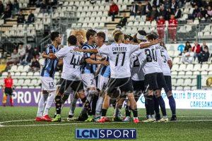 Pro Vercelli (3-5-2): Rizzo; Clemente, De Marino, Marchetti; Viggiani (dal 42′ s.t. Iezzi), Iotti, Louati, Rutigliano (dal 26′ s.t. Sow), Carosso (dal 26′ s.t. Pino); Bunino (dal 42′ s.t. Coppola), Comi (Passador, Biagetti, Dell’Aquila, Emmanuello, Gheza, Cugnata, Sbraga, Contaldo, Schenetti, Anton, Serpe). All.: Paolo Cannavaro