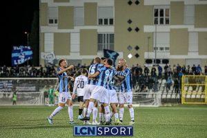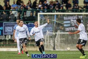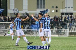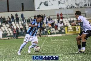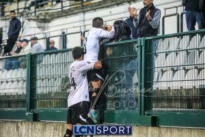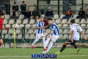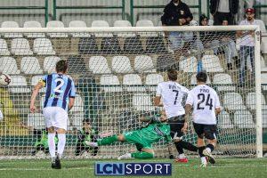 Partenza sprint dei padroni di casa che cercano di schiacciare gli ospiti per un paio di minuti in area, senza grande costrutto. Alla prima vera occasione per i blucelesti, la partita si sblocca: cambio di gioco sontuoso di Beghetto a destra per Galeandro che stoppa di petto, si sposta sul mancino e trafigge un non irreprensibile Rizzo per l’1-0.