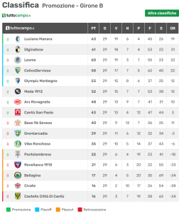 Di seguito, vengono proposte la classifica e il quadro delle gare dell’ultimo turno di campionato: