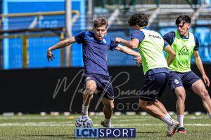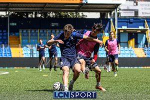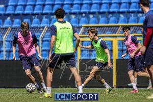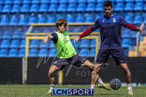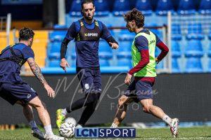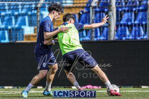 Tornando al rettangolo verde, dopo l’attivazione iniziale la squadra ha lavorato sul possesso in forme diverse: prima diviso in varie stazioni, poi con il gruppo diviso in tre parti per alzare l’intensità e la qualità delle scelte. La parte centrale ha previsto esercitazioni sugli sviluppi offensivi, preludio alla simulazione dell’11 contro 11: in questa fase mister Valente ha messo in campo una formazione credibile in vista dell’epilogo di Crema con la Pergolettese, con il solo Zanellato tra i diffidati che verrebbero mandati in campo dal primo minuto.