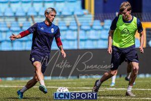 Caldo moderato per la prima seduta del Lecco in vista dell’ultimo atto con la Pergolettese. Ci sono buone notizie per mister Valente: sia Tanco che Lovisa hanno lavorato in gruppo per la gran parte dell’allenamento, saltando solamente l’11v11 finale. Buone risposte, insomma, per lo staff tecnico e lo staff medico soprattutto parlando del centrale argentino, assente da tre mesi per la lesione del tendine degli adduttori. Out Marrone e Basili, invece, che hanno svolto l’intera sessione tra palestra e ripetute in linea retta sul campo: il loro rientro in campo resta da monitorare, anche se l’attaccante era andato in panchina con Alcione e Lumezzane. Assente causa indisposizione Ndongue.