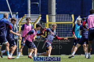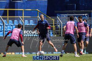 A inizio seduta mister Valente ha fermato l’allenamento per un momento fuori copione: il piccolo Nathan è stato chiamato in campo e la squadra, al completo, gli ha cantato «tanti auguri», poi il giovane tifoso ha seguito la seduta da bordocampo.