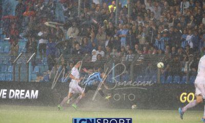 Nel primo tempo, sotto il diluvio, i blucelesti tengono bene il campo. Ripresa complicata e decisa da un penalty all'85', ma...